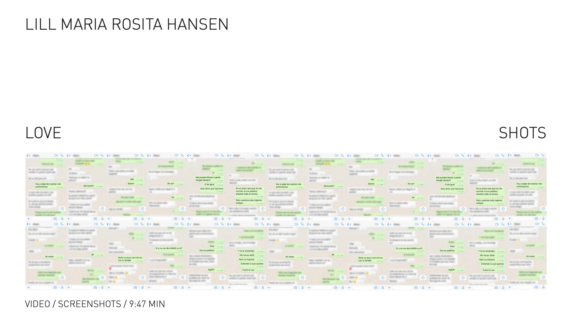 I collected hundreds of screenshots of message interactions I had had with my partner at the time, over a period of roughly six months. These images of conversations are put together in a video-loop and added sound, the notification sound of “new message” from WhatsApp. The beeping sound intensifying the experience for the spectator, creating an uncomfortable atmosphere that accompanies the tension of my messages sent to the other side.